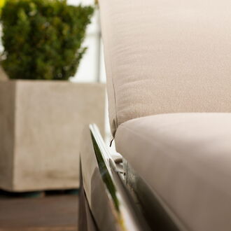 The frame is available in a full elliptical V4A stainless steel version (indestructible, resistant to chlorine and salt, hygienic and extremely easy to clean) or in a combination of elliptical stainless steel and weatherproof hardwood sourced from controlled plantations (FSC 100%). The internal frame is always made of hardwood, regardless of the model.