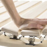 Endlich können Sie in jeder Sauna - unabhängig vom Hersteller - den Komfort genießen, den Sie bislang nur aus dem Schlafbereich kannten. Mit der hake konzept® Saunabank erreichen Sie einen traumhaften und unvergleichlichen Sitz- und Liegekomfort. Jede der einzeln verbauten Saunabanklatten ist beidseitig gefedert: Das ist das Geheimnis für dieses einmalige Saunaerlebnis.